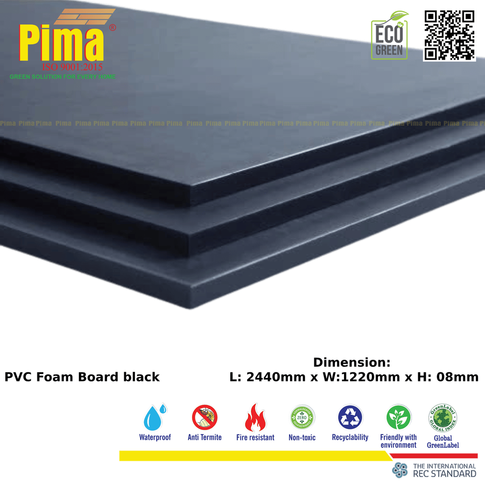 Hoja de tablero de espuma WPC de PVC negro personalizado, 8mm de espesor, 0,6G/cm3, densidad, Interior liso para muebles de cocina, publicidad, código HS