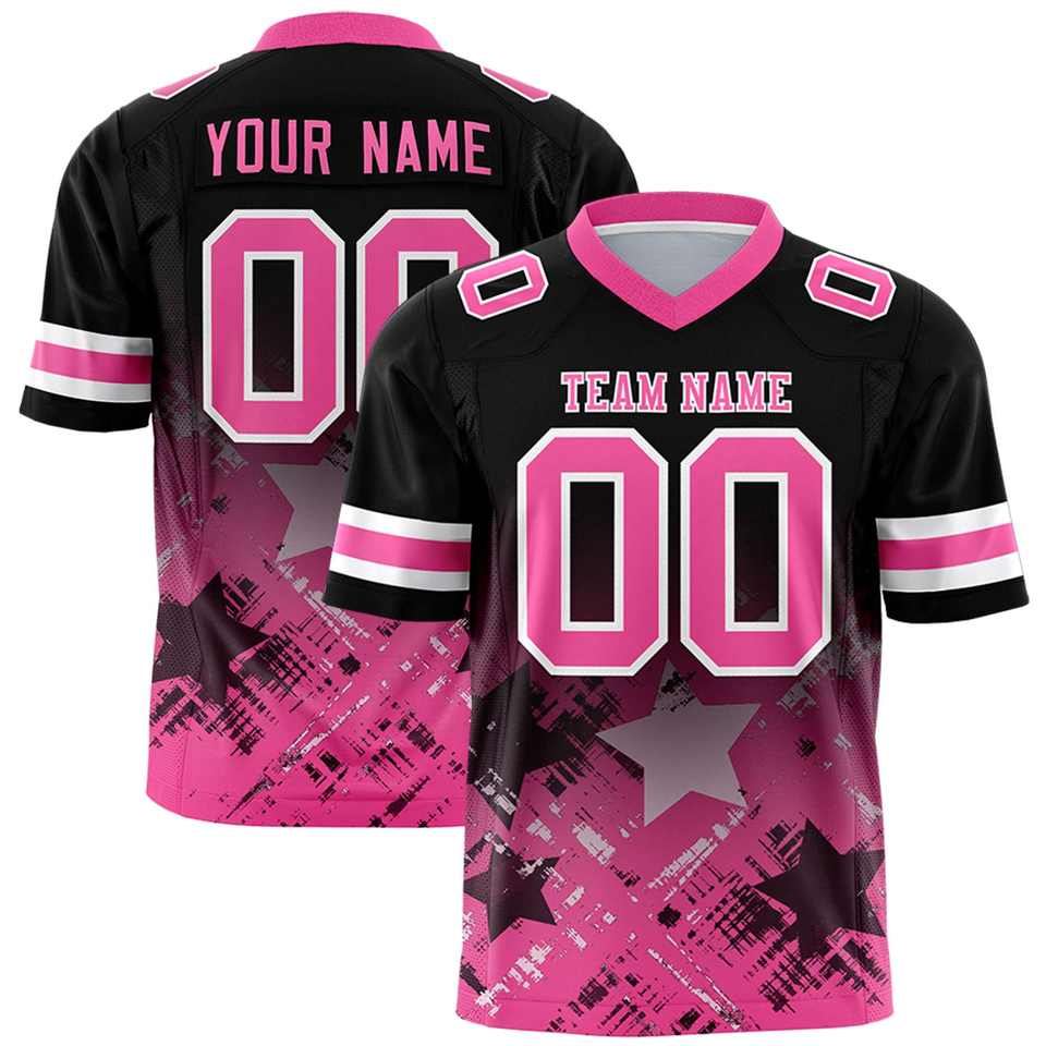 Camiseta de Fútbol Americano Personalizada con Estrella Degradada en Negro y Rosa