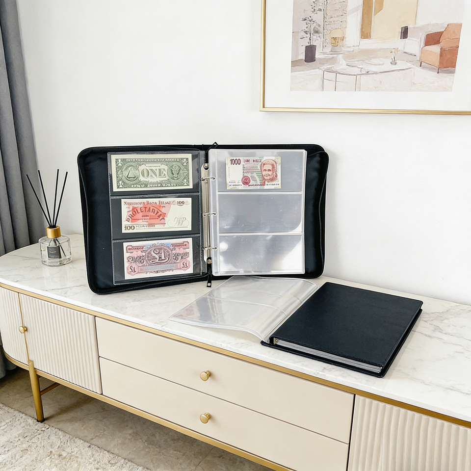 Carpeta Rectangular Negra Personalizada para Colección de Monedas, Álbum de Almacenamiento de Monedas