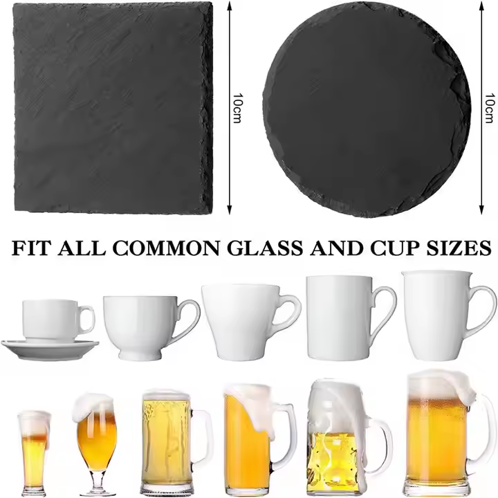 Posavasos de pizarra negra personalizado Precio de fábrica Posavasos de piedra de pizarra Posavasos de pizarra redondos cuadrados personalizados para Du Nord 52 ochenta