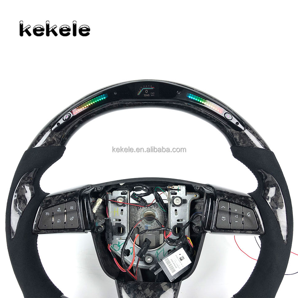 Volante Deportivo Personalizado de Cuero Negro y Fibra de Carbono Forjada con LED para Cadillac CTS CTSV CT4 CT5 ATS ATSV