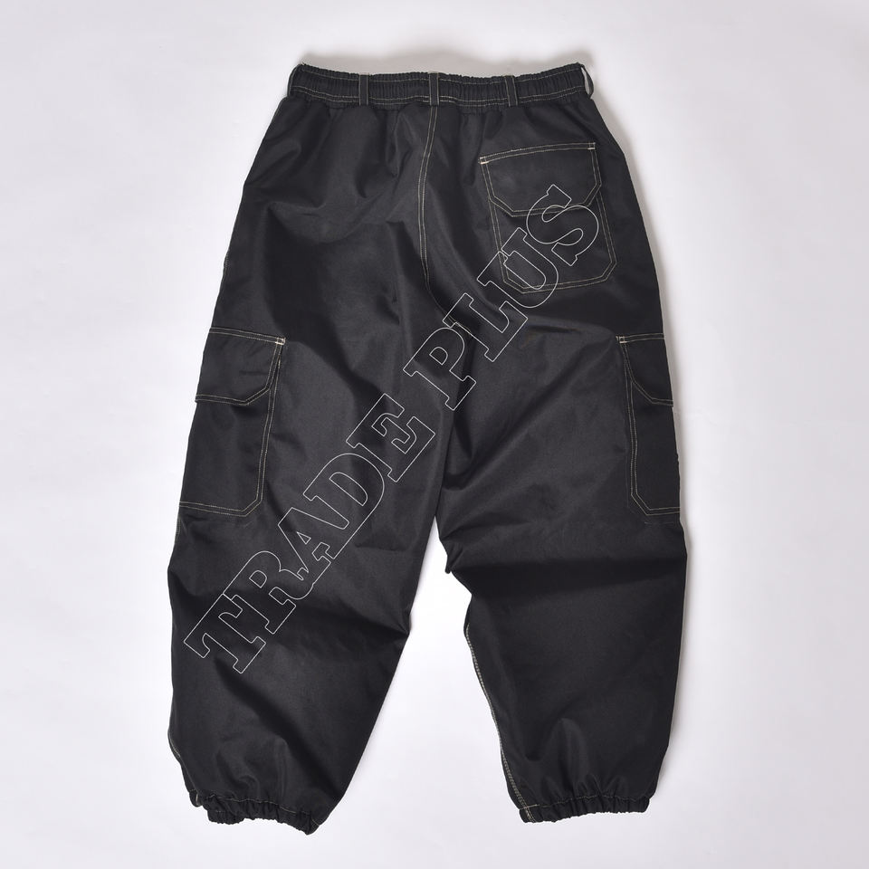 Pantalones Cargo impermeables negros personalizados con dobladillo ceñido en la cintura con cordón y múltiples bolsillos utilitarios
