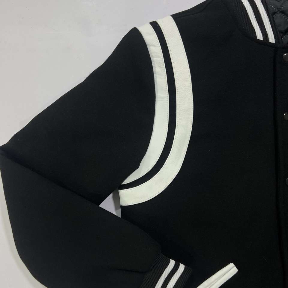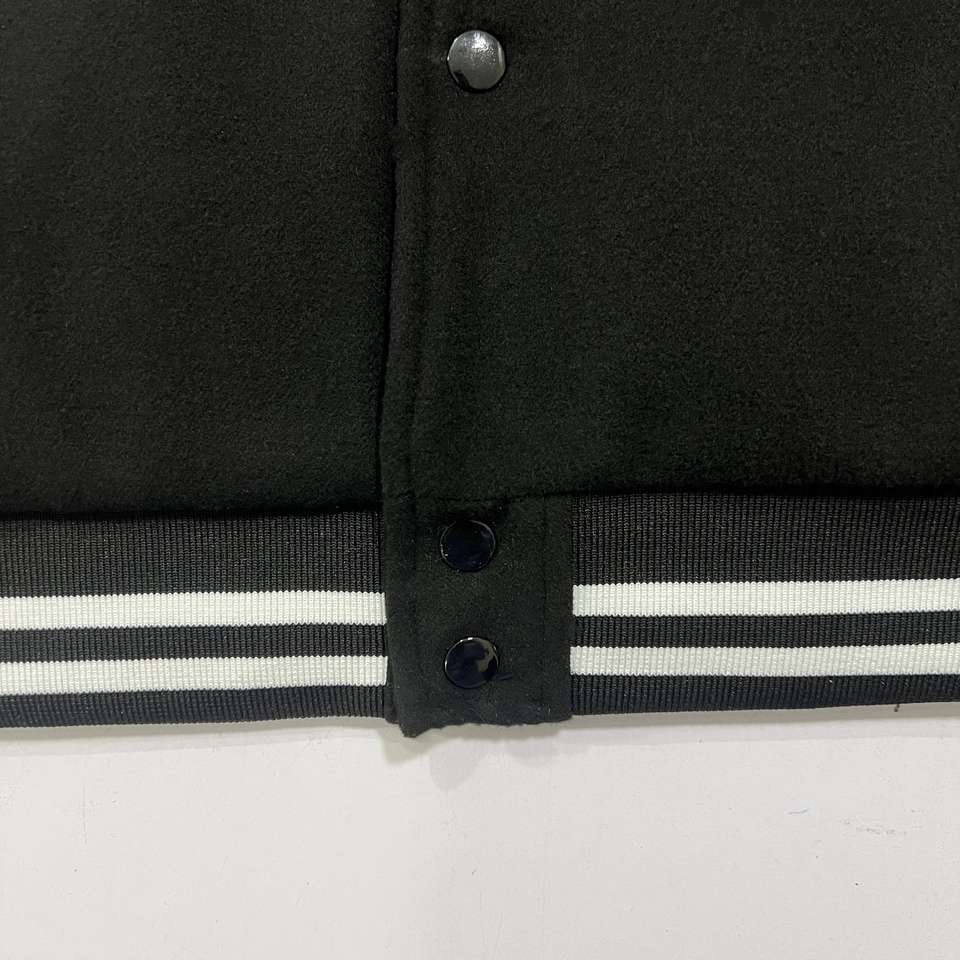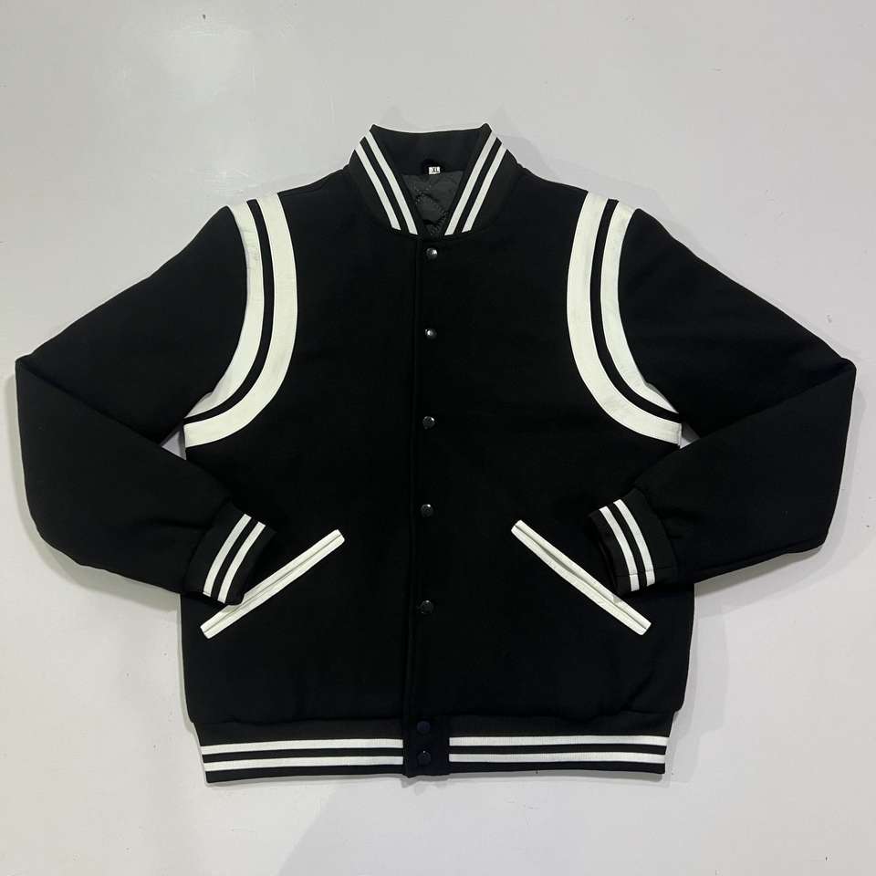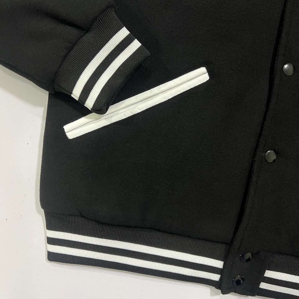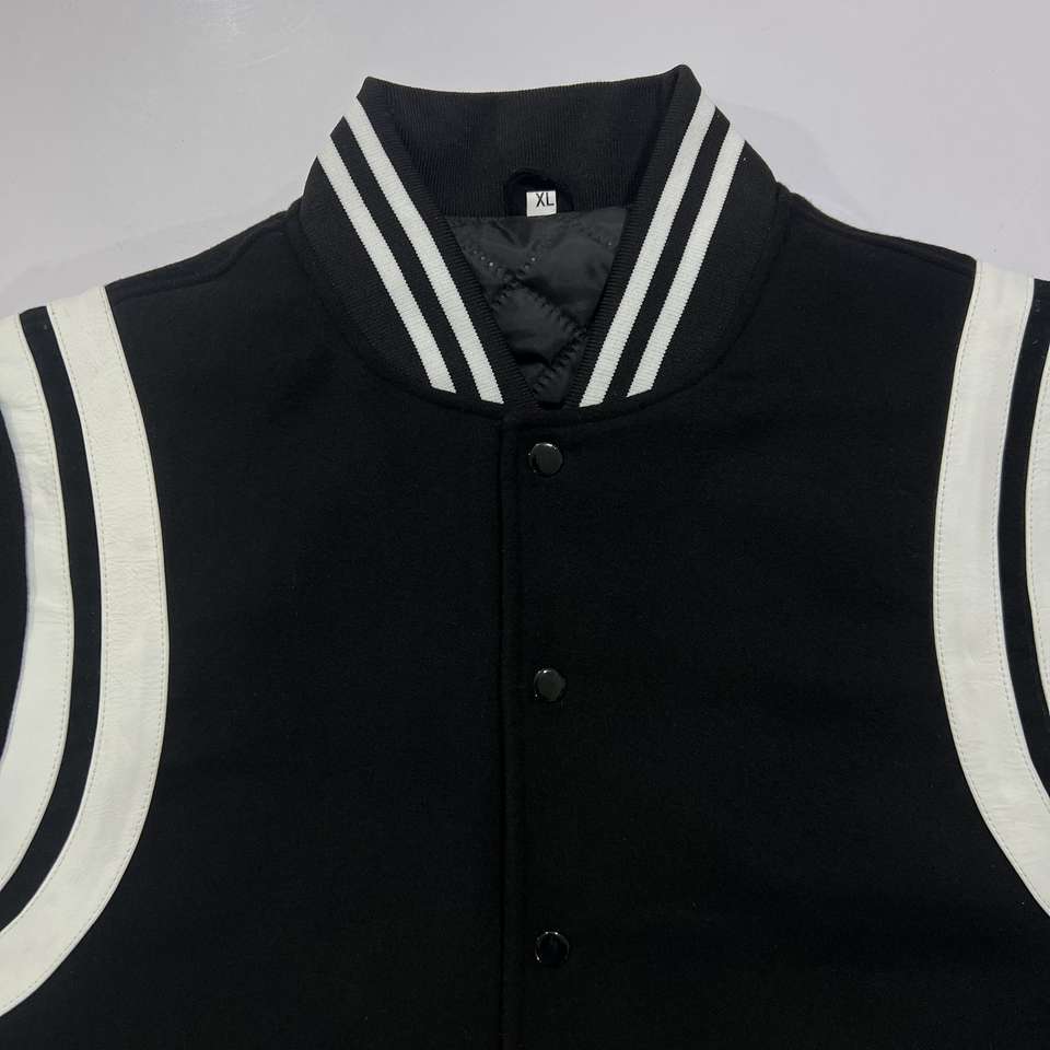 Chaquetas Varsity de Invierno Personalizadas en Blanco y Negro, Estilo Retro, de Forro Polar y Cuero, con Cuello Alto, Bordado, Transpirables y Resistentes al Viento para Hombre