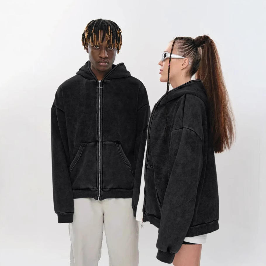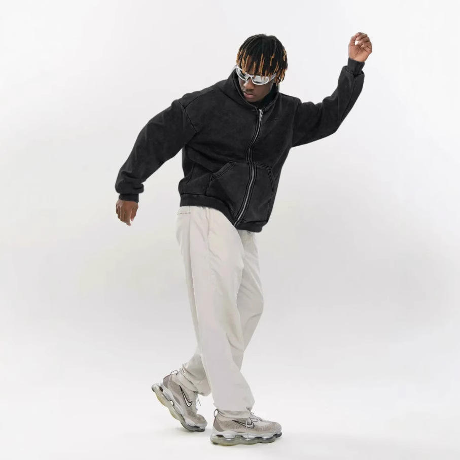 Sudadera con capucha ácida de 100% algodón en blanco personalizada, serie High Street, Sudadera con capucha antigua de gran tamaño, Sudadera con capucha vintage lavada con piedra