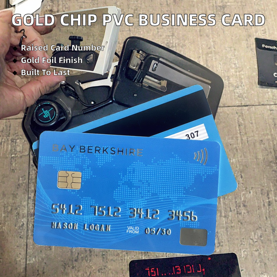 Tarjeta de Visita de PVC Personalizada con Chip de Memoria, Estampado Dorado, Impresión Serigráfica, Laminación, Número en Relieve y Código de Barras