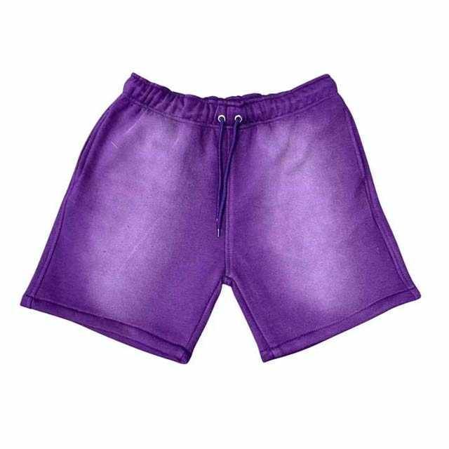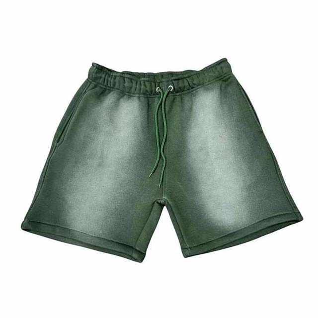 Personalizado en blanco sudor corto cordón ácido lavado bordes crudos Vintage liso francés Terry algodón polar Jogger deportes lavado pantalones cortos para hombre