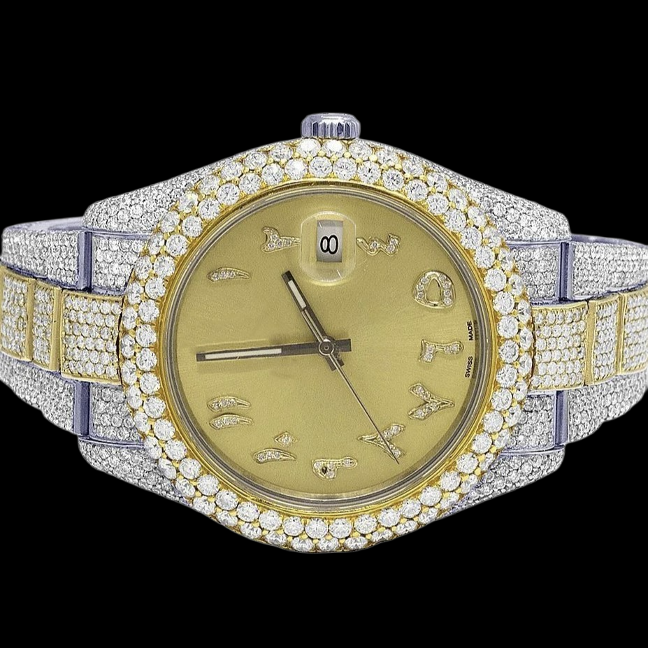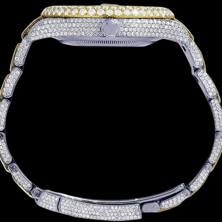 Reloj Personalizado con Cristales de 41 mm, Movimiento de Cuarzo, Oro Blanco, Acero Inoxidable, Números Arábigos, Esfera de Cristal de Dos Tonos, Estilo Hip Hop