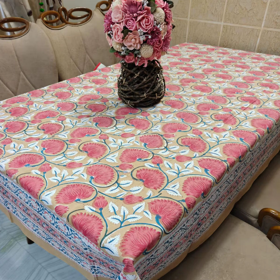 Mantel de Algodón Ecológico Minimalista con Estampado Floral Personalizado, Hecho a Mano en Rajasthan, para Fiestas, Bodas, Acción de Gracias