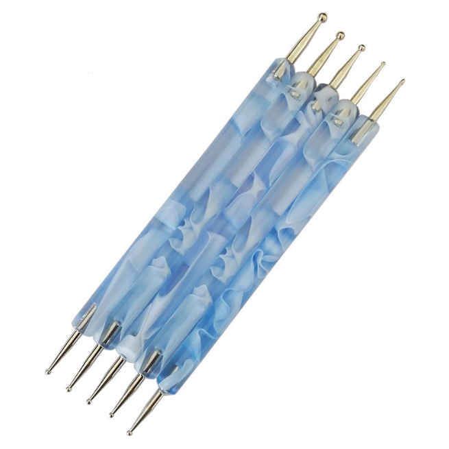Azul personalizado 5 unids/set uñas doble mango acrílico diferentes colores uñas punteado pluma punto cepillo Mandala punteado herramientas