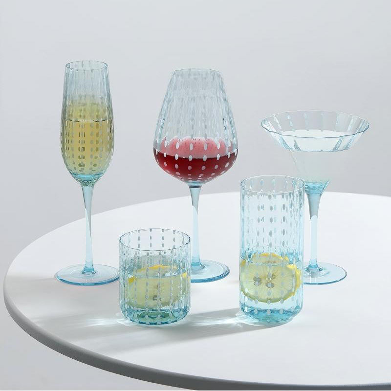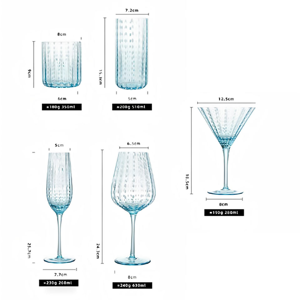 Vasos de Vino Personalizados Azules con Diseño de Punto de Ruptura, Hechos a Mano, para Bar