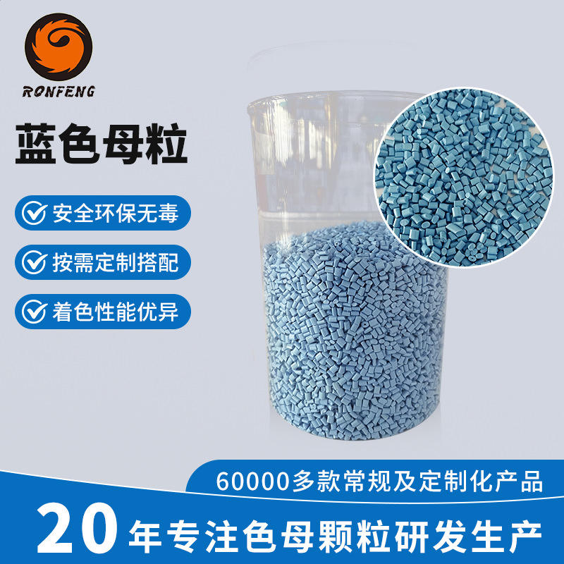 Masterbatch PET Azul Personalizado de Rongfeng Technology, Moldeo por Inyección Universal, Plástico Ecológico de Alta Concentración