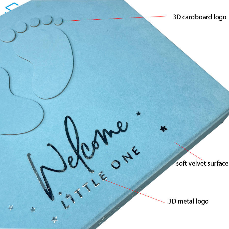 Nombre del producto:Embalaje de terciopelo azul recién nacido regalo conjunto ropa bebé recuerdo caja