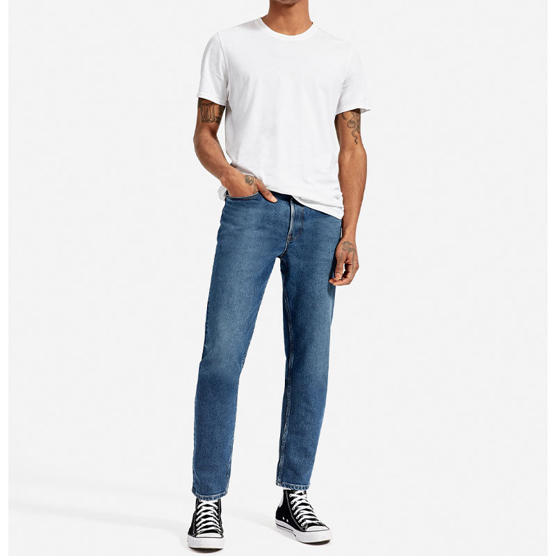Pantalones vaqueros de hombre de corte regular lavados azules personalizados, ropa informal de algodón 100%, diseño personalizado