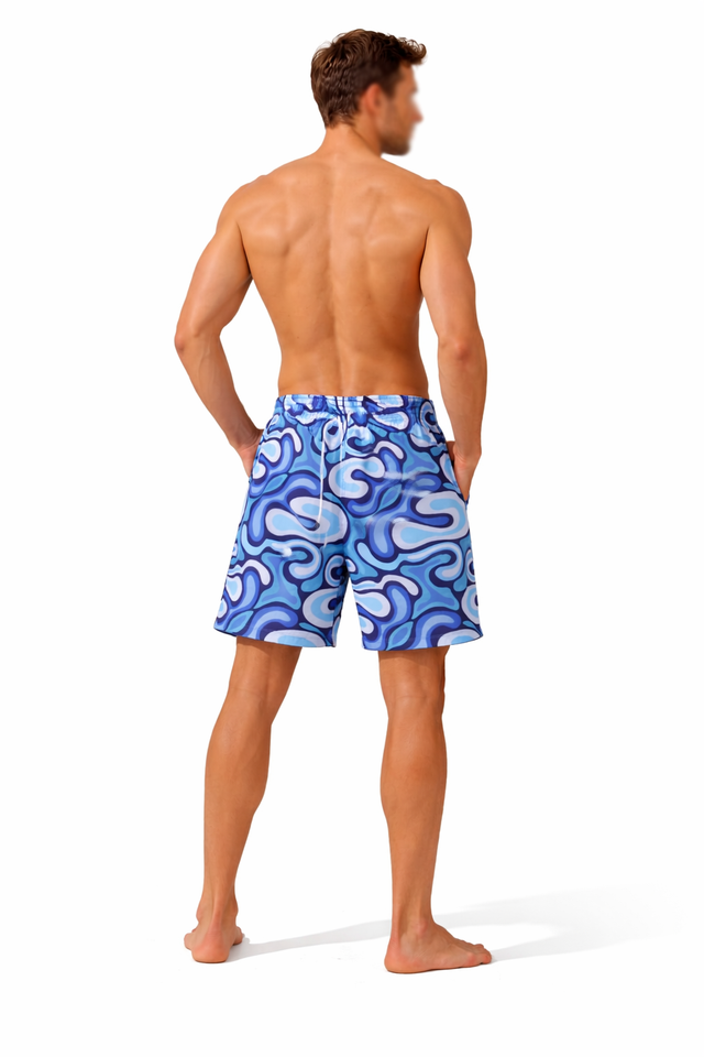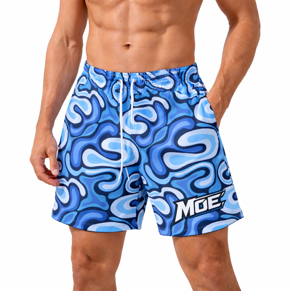 Pantalones Cortos Deportivos para Hombre con Estampado de Ondas Azules Personalizados, Ligeros, de Poliéster, para Entrenamiento, Producción OEM al por Mayor