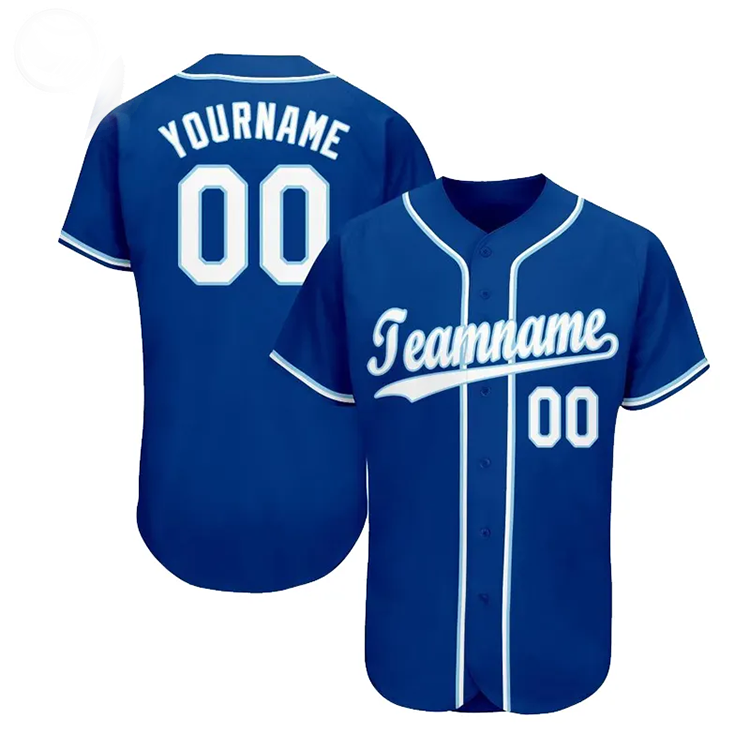 Camiseta de Béisbol Azul y Blanca Personalizada con Botones, Nombre del Equipo y Número Personalizados, Camiseta Deportiva de Manga Corta para Hombre