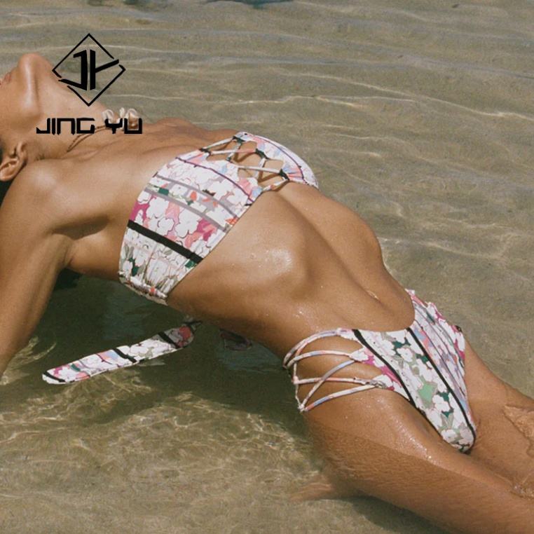 Traje de Baño Bohemio Personalizado de Alta Calidad, Conjunto de Bikini Estampado con Diseño OEM, Poliéster Ecológico