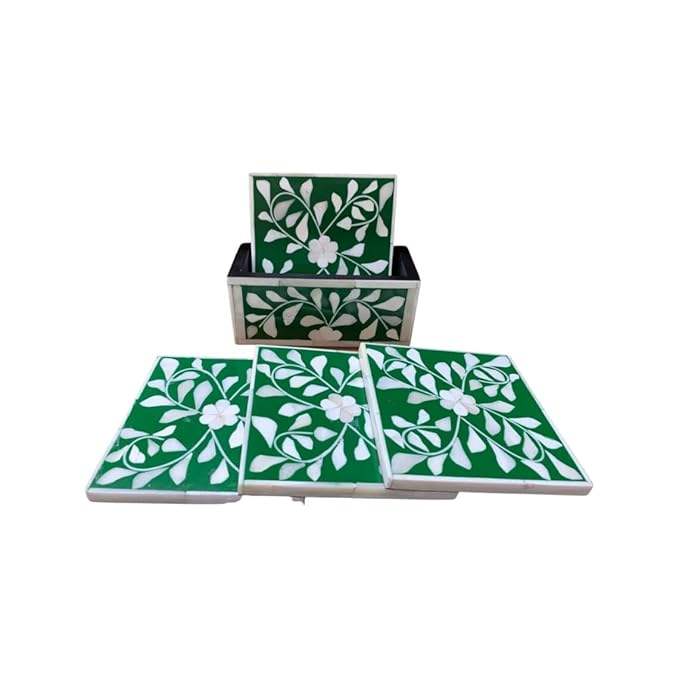 Juego de Posavasos Art Deco con Incrustaciones de Hueso Personalizados - Forma Cuadrada 10x10cm Ecológicos Duraderos Resistentes al Calor Antideslizantes Hechos a Mano