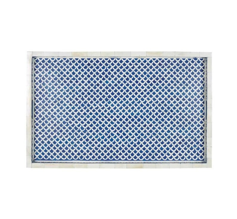 Bandeja de Servicio Tradicional con Incrustaciones de Hueso Personalizada | Bandeja Decorativa Artesanal para Hogar, Cocina, Comedor, Bodas y Decoración de Mesa de Lujo