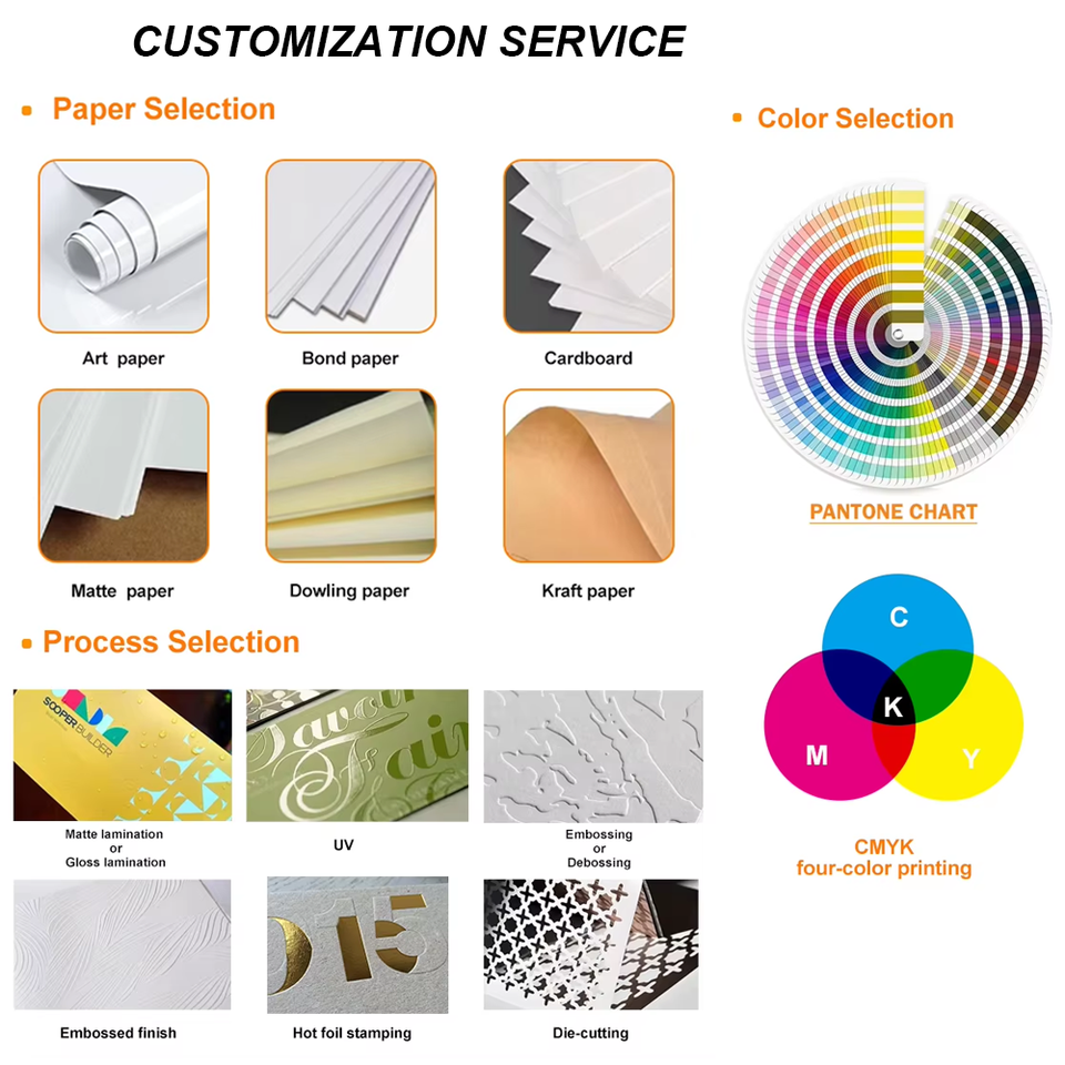 Material de la cubierta:Papel brillante, papel mate, PVC, cuero PU, tela, etc.