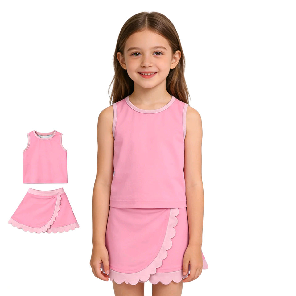 Conjunto de Ropa para Bebés Niñas: Camisa Casual de Algodón Rosa con Estampado Personalizado, Chaleco Transpirable, Falda con Borde Festoneado y Pantalones Cortos con Forro