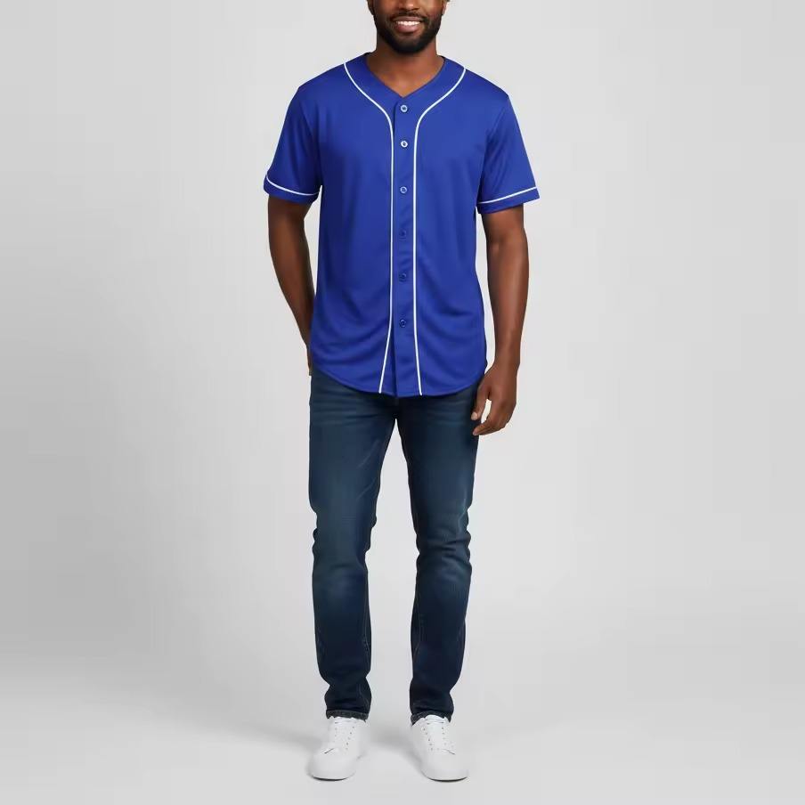 Camiseta de béisbol y bolos personalizada con botones, corte holgado, estampado de rayas, uniforme, manga corta, estilo cropped para hombre