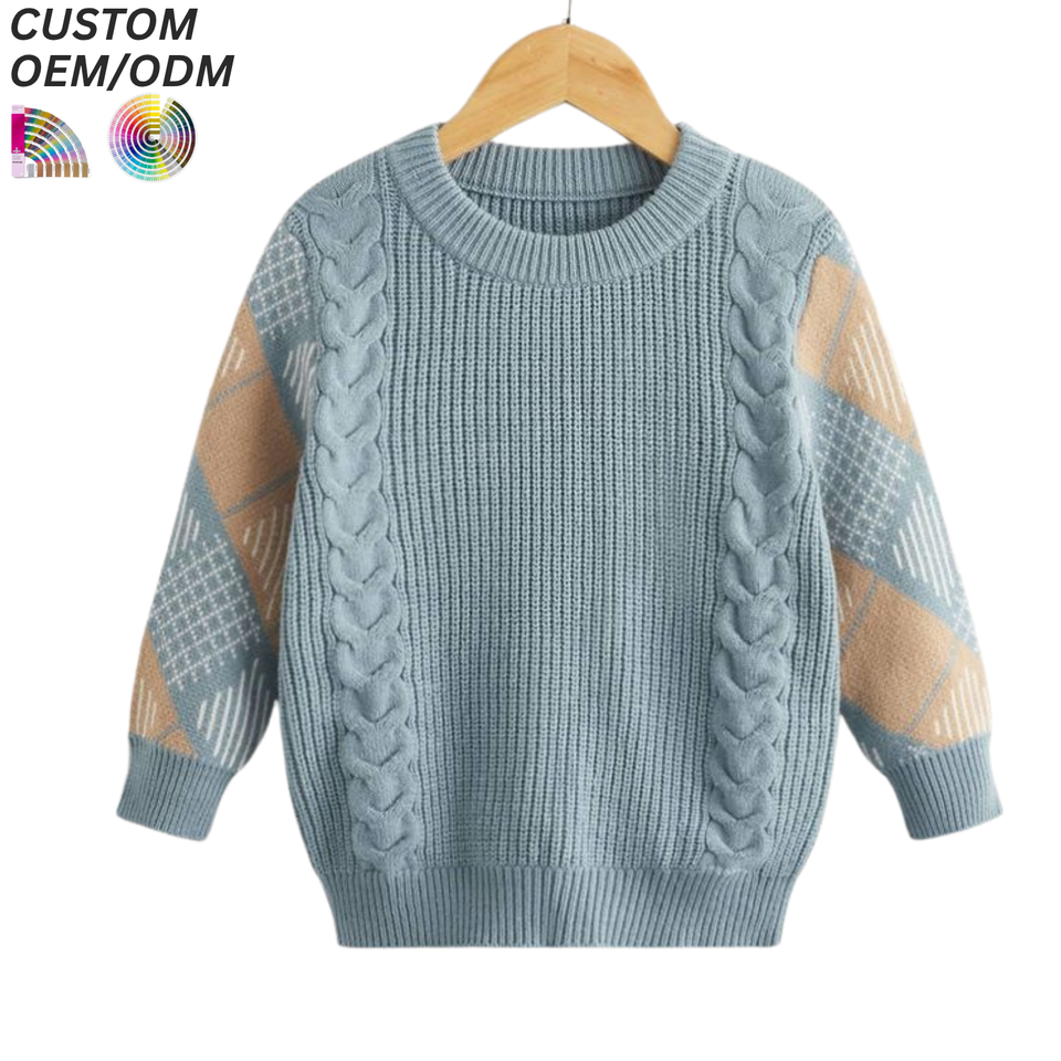 Suéter de Punto Personalizado para Niños, Diseño de Diseñador, Poliéster/Algodón, Ecológico, Antipilling, Ropa Casual de Invierno para Niños, OEM ODM