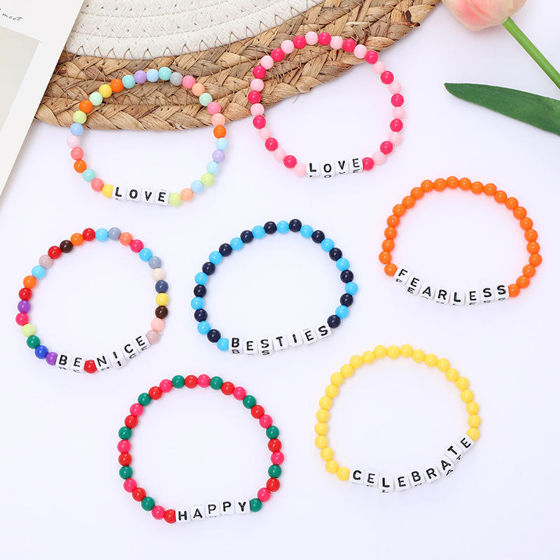 Pulseras de cuentas con letras iniciales de marca personalizada para mujeres y niñas, pulseras de cuentas chapadas en oro motivacionales de Amistad colorida, 7 Uds.