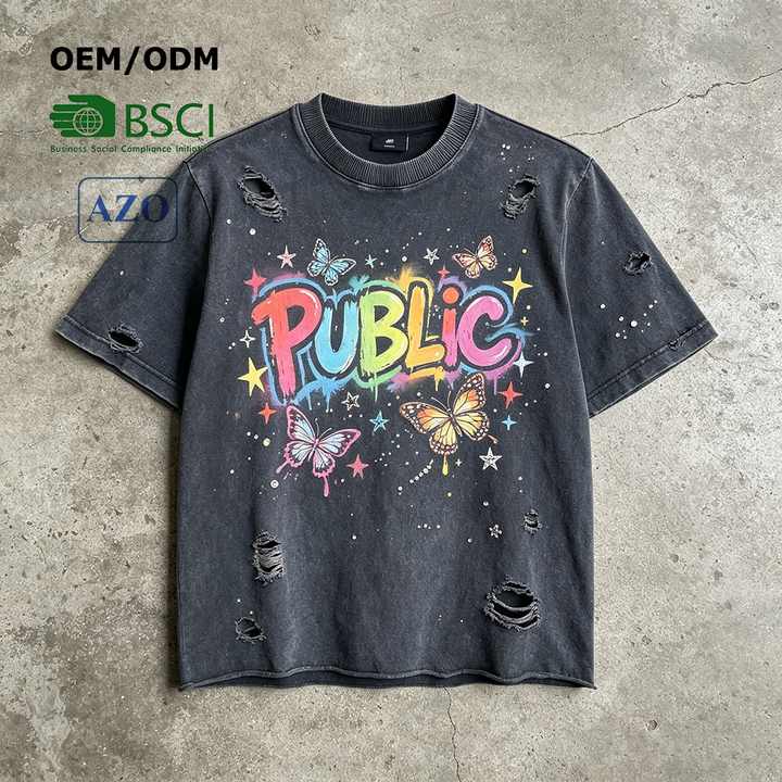 Camiseta Oversize para Hombre con Estampado Digital de Diamantes de Imitación, Estilo Urbano, Lavado Ácido y Desgastado, de Fábrica de Ropa de Marca Personalizada