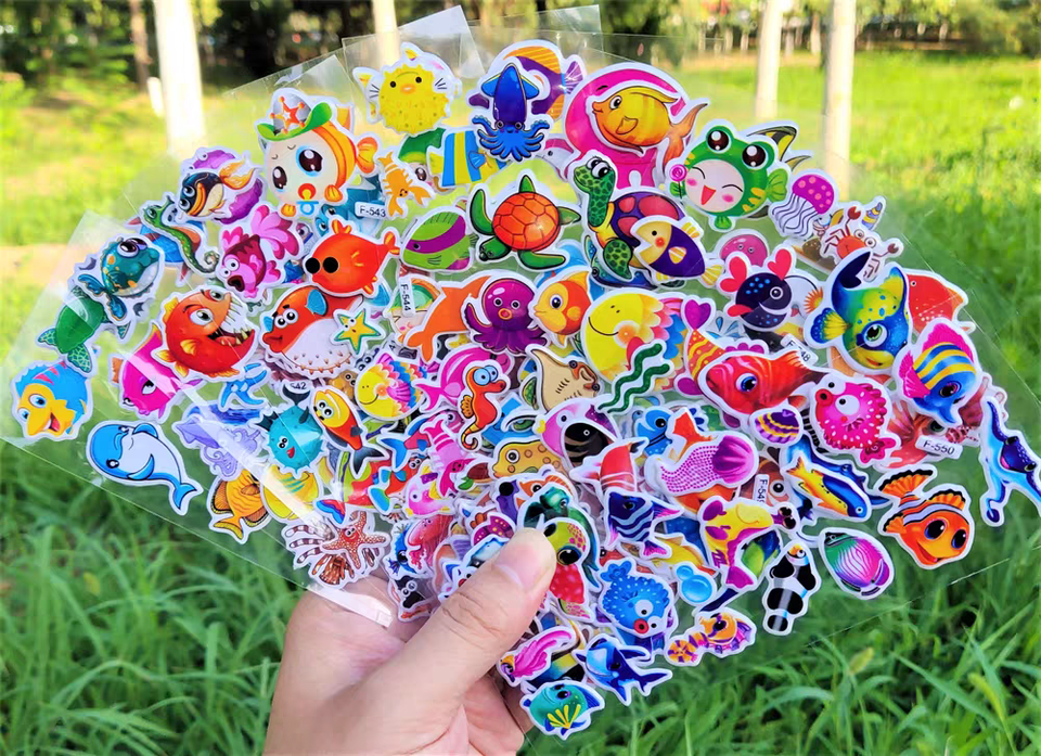 Hoja de pegatinas de vinilo PVC personalizadas con logo de marca, impresas por transferencia térmica, acabado mate, troqueladas, impermeables, con diseño de dibujos animados para