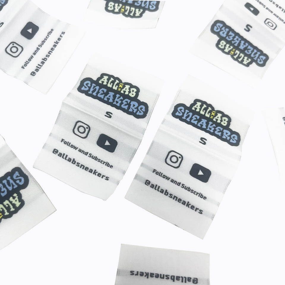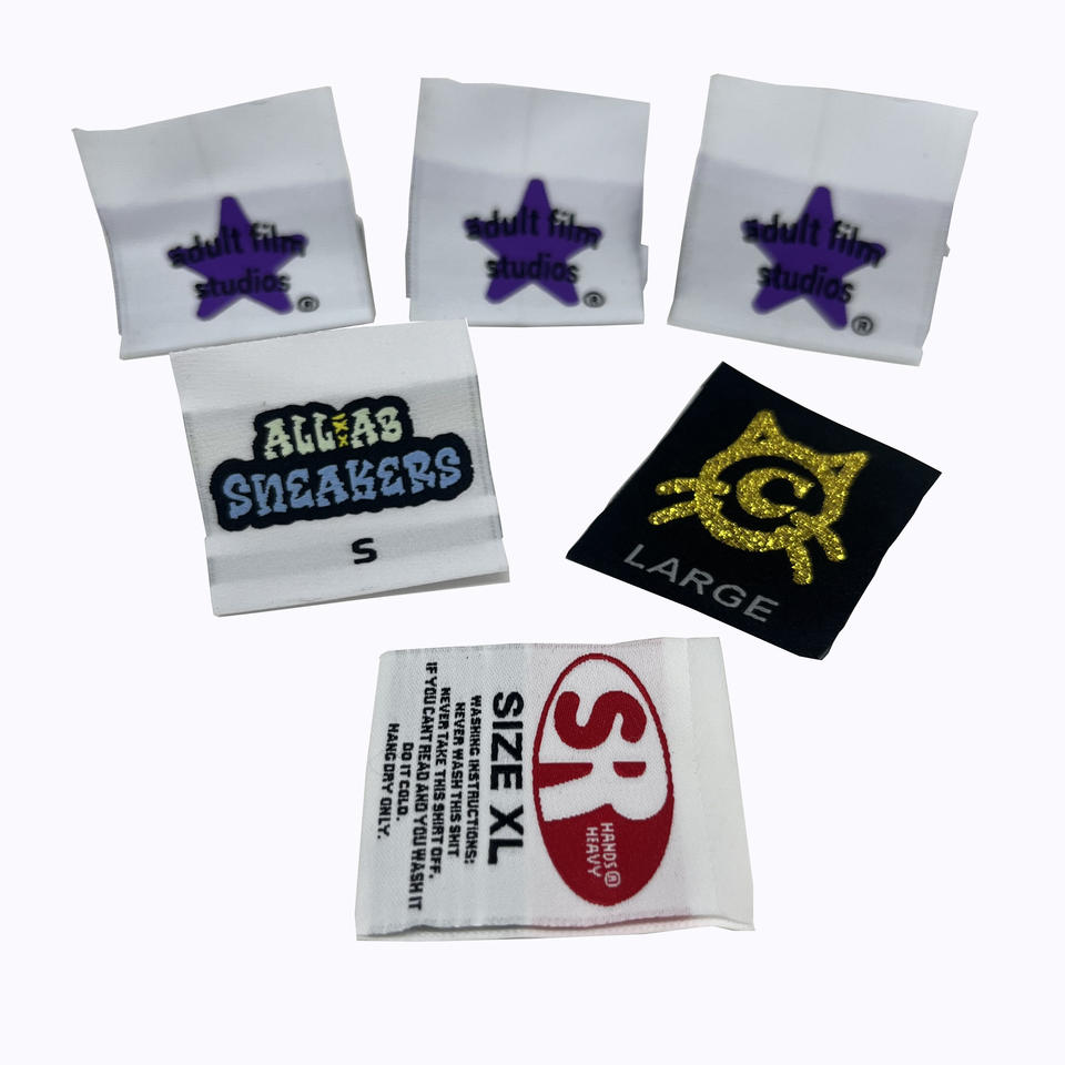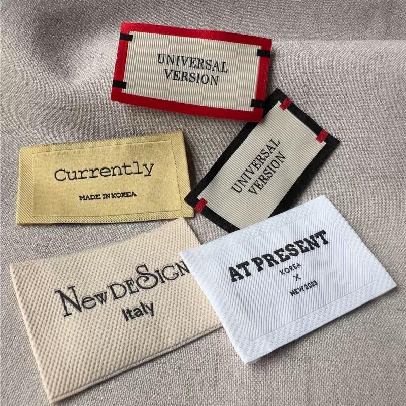 Logotipo de marca personalizado bordado lavable de alta densidad satén impreso etiquetas de bandera tejida para prendas de vestir