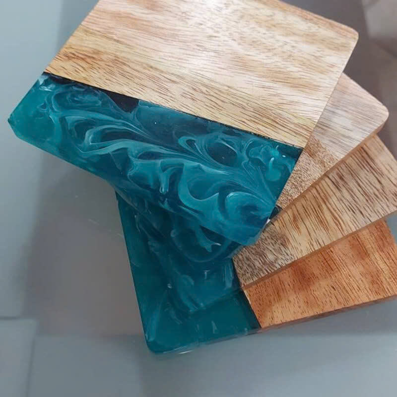 Descripciones:Posavasos de copa Posavasos cuadrados de madera y resina epoxi