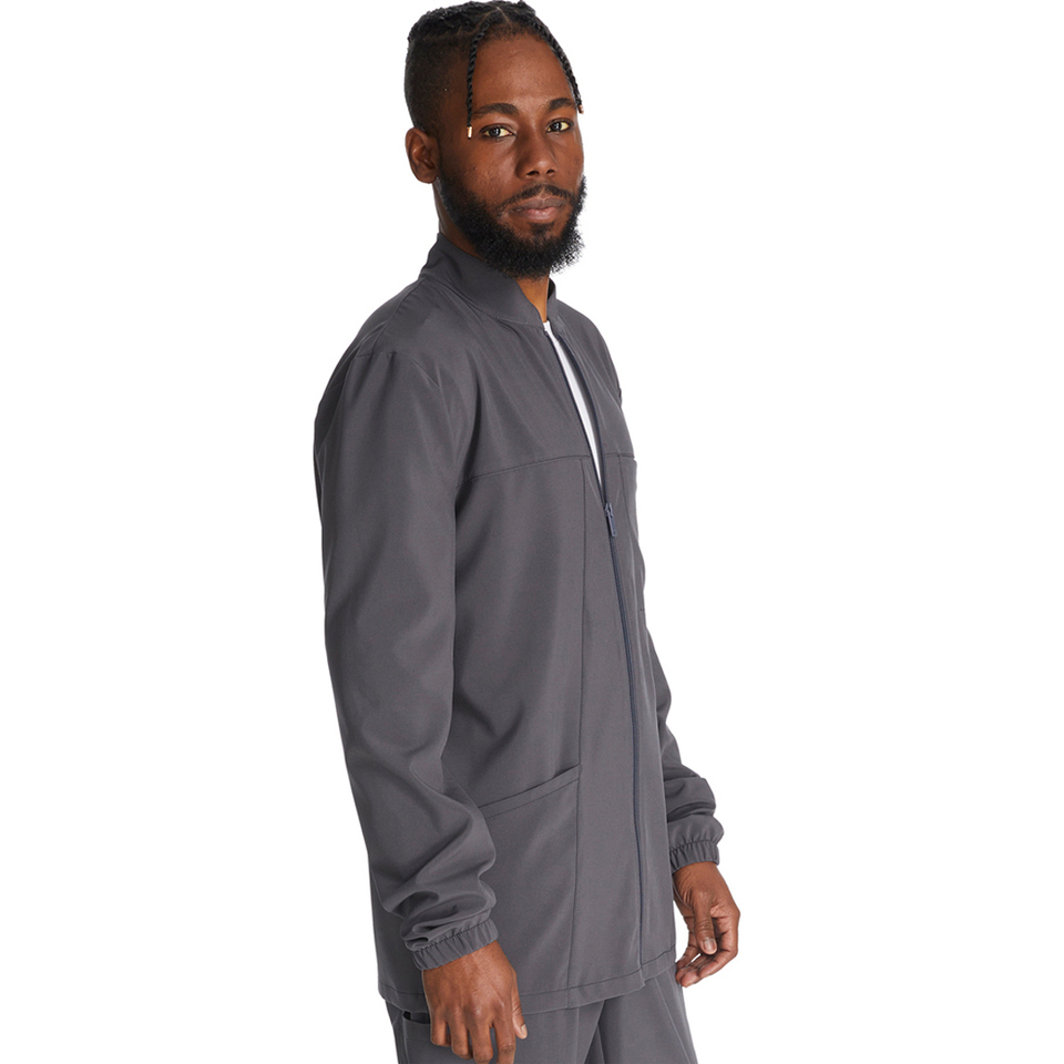 Chaqueta de algodón 100% con 3 bolsillos y cremallera frontal para hombre de marca personalizada, uniforme de hospital de manga larga con cuello levantado y puños elásticos