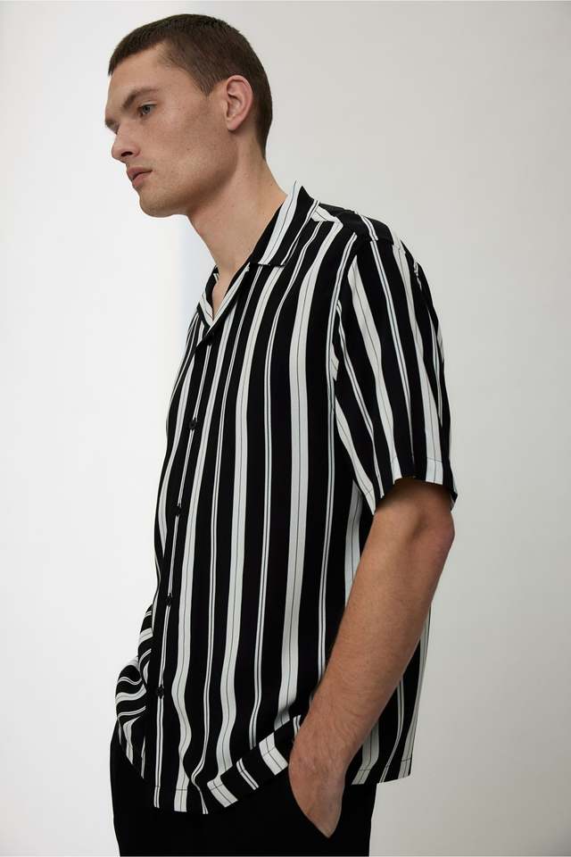 Marca personalizada Top Trending Hombres Longitud regular Comfort Wear 100% Tejido de viscosa Manga corta a rayas Precio al por mayor Resort Shirt