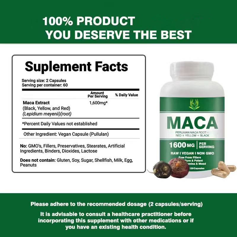 Cápsulas de Raíz de Maca de Marca Propia para Aumentar la Energía, Antioxidantes y Refuerzo del Sistema Inmunitario - Potenciadores Naturales de la Salud