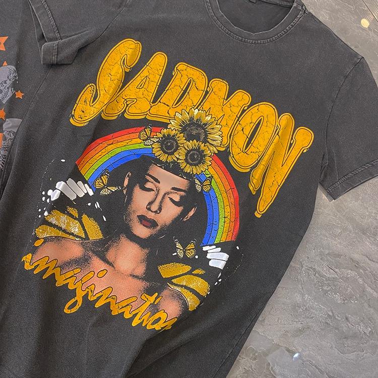 Camisetas con logo de marca personalizada para hombre, camisa de lavado de ácido de algodón pesado, de gran tamaño