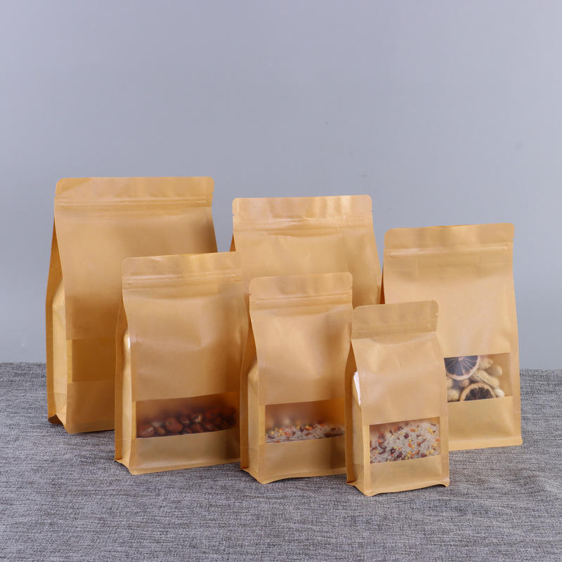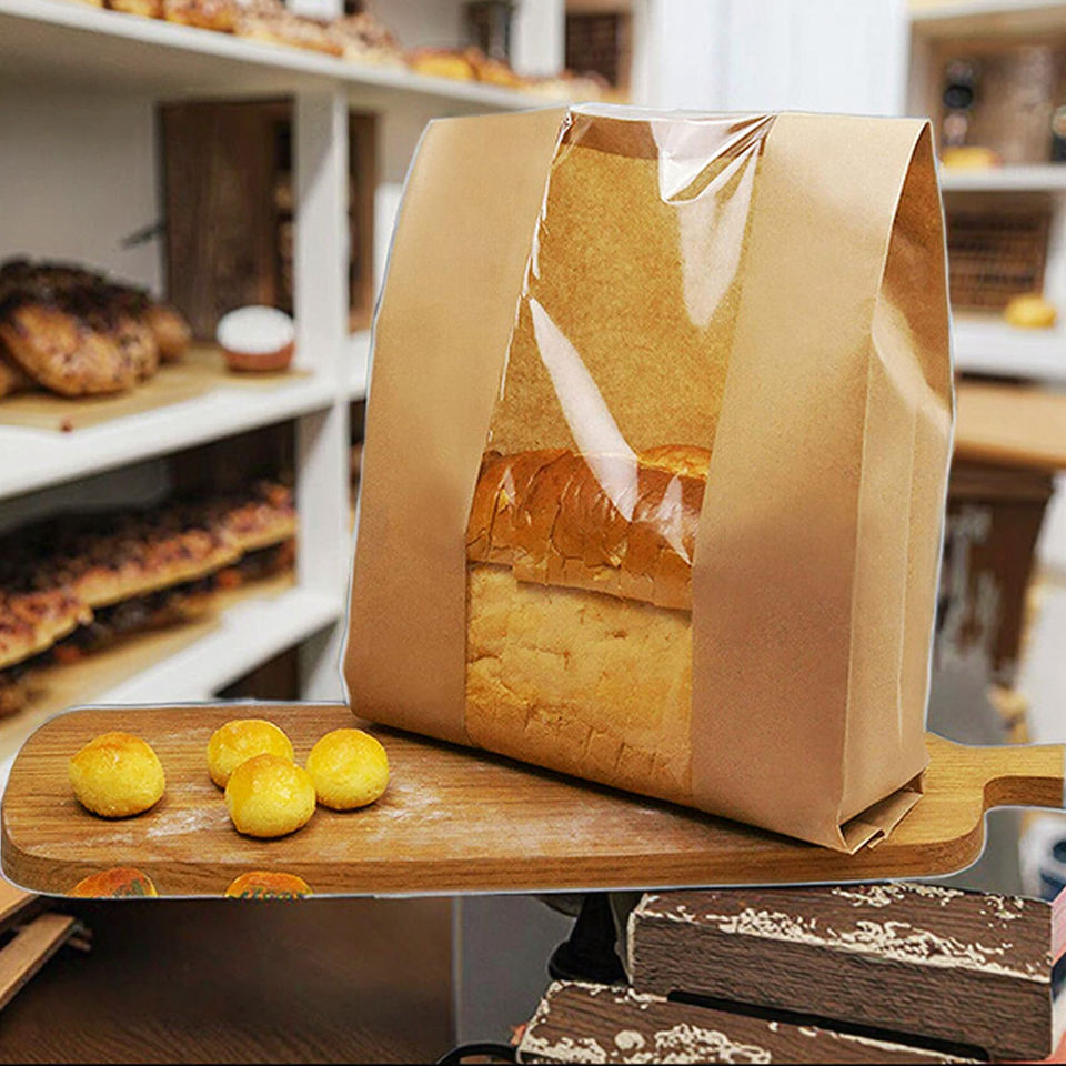 Bolsas de papel personalizadas para pan con ventana, bolsas de papel para llevar para galletas, granos de café, nueces, palomitas de maíz