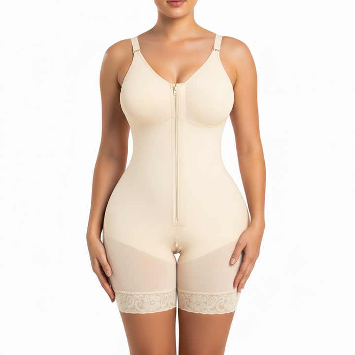 Faja Moldeadora Colombiana Personalizada Transpirable Ecológica con Cremallera Frontal de Alta Compresión en Spandex/Nylon Powernet de Control Medio de Secado Rápido