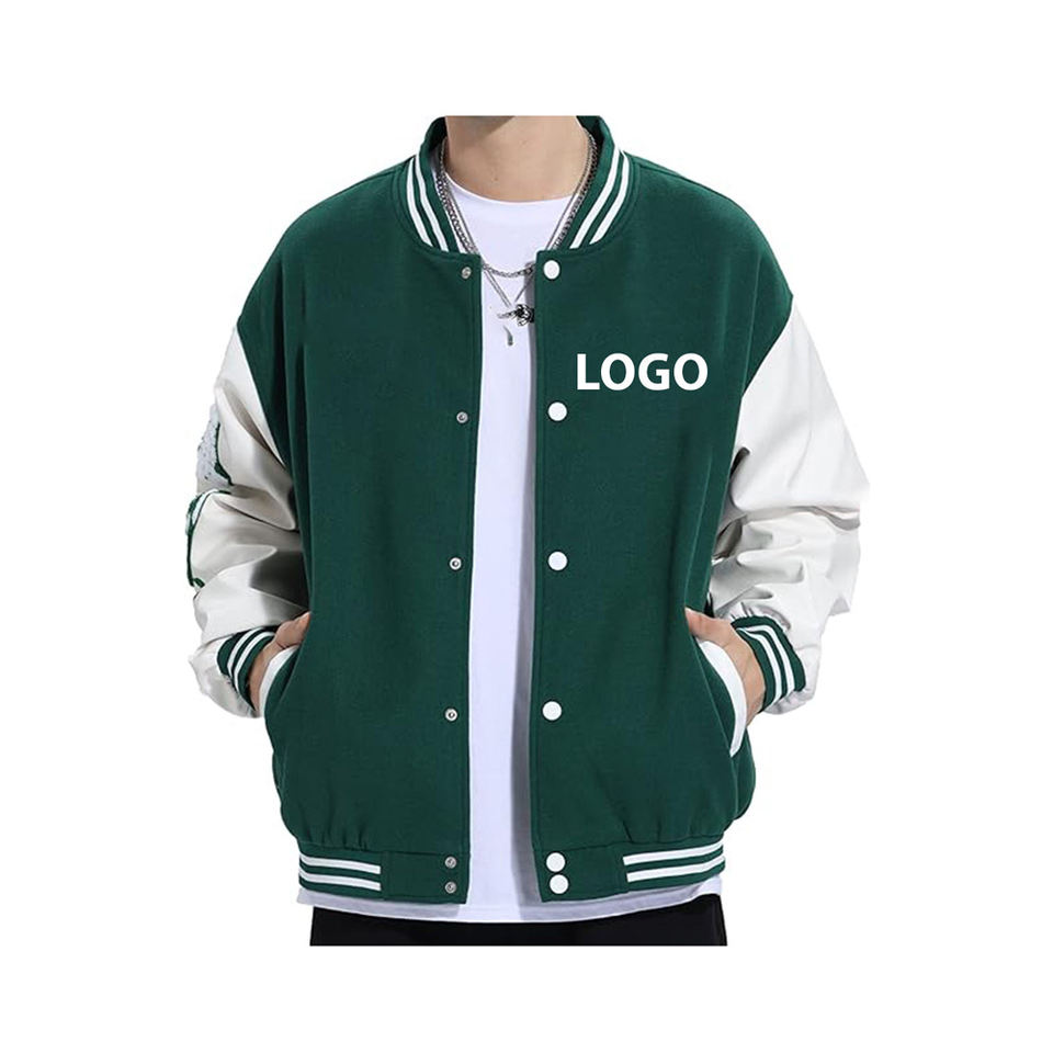 Chaqueta universitaria con mangas de cuero de Color sólido transpirable personalizada para hombre, gran oferta, chaquetas con letras de béisbol en blanco para hombre a la venta 2025