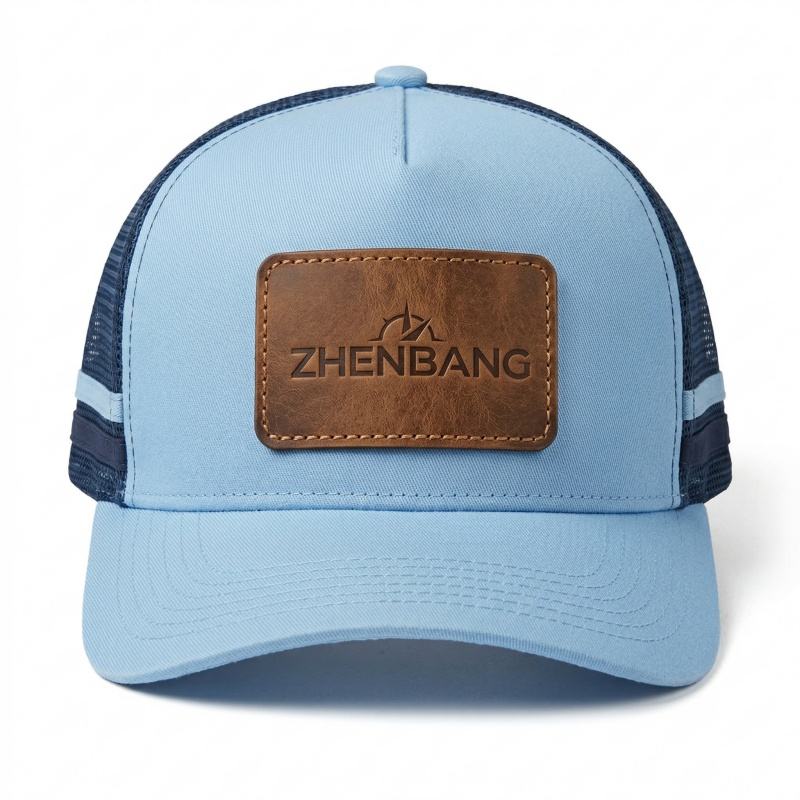 Gorra Trucker Personalizada de Malla Transpirable con Parche de Cuero y Logotipo Grabado, Parches Termoadhesivos para Gorras Trucker al por Mayor para Uso en Exteriores y de Marca