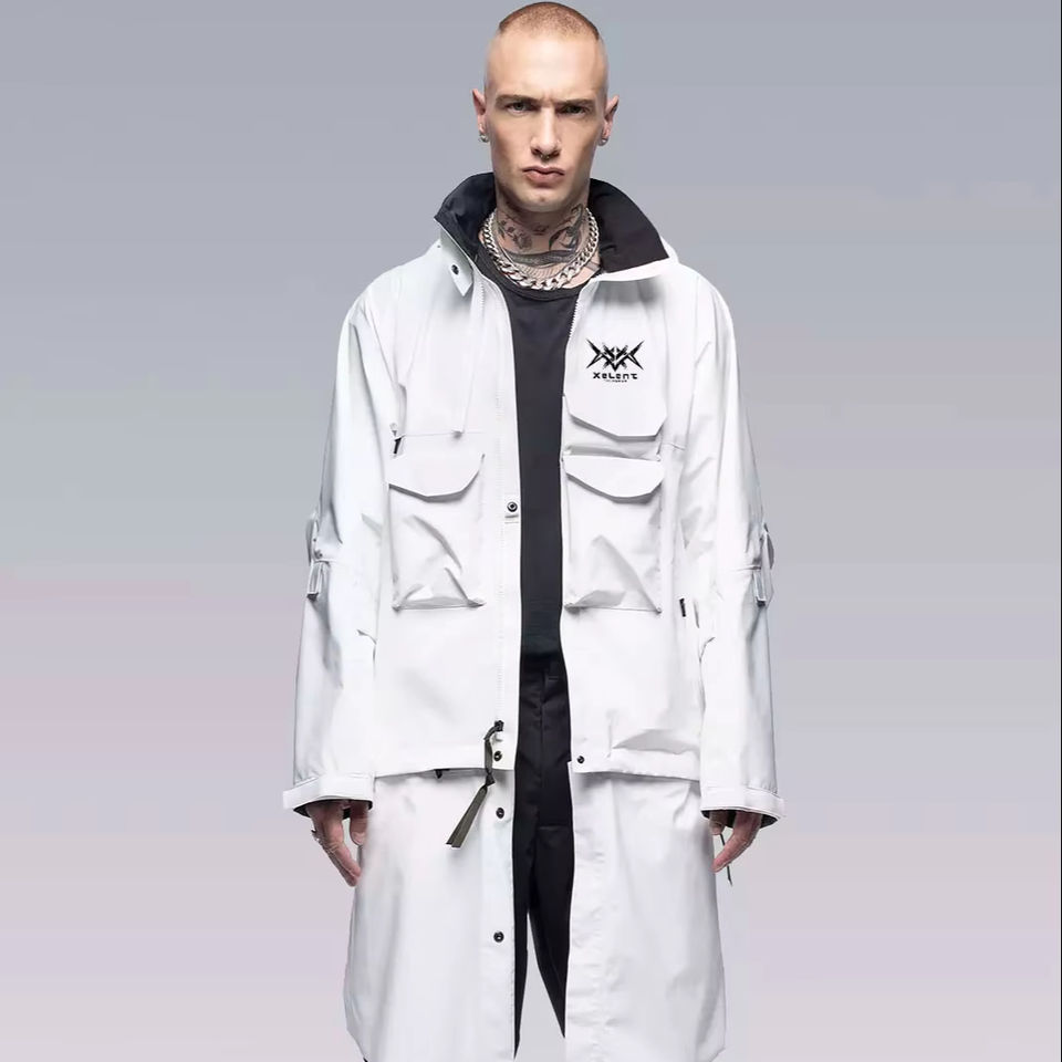 Chaqueta Techwear transpirable personalizada para hombre-Cortavientos con capucha de lona impermeable negra High Street Style para primavera OEM disponible