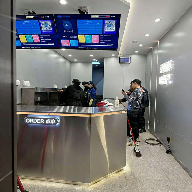 Barra de Bar Comercial de Acero Inoxidable Cepillado Personalizada con Señalización y Estante de Exhibición para Promoción de Exhibiciones Minoristas