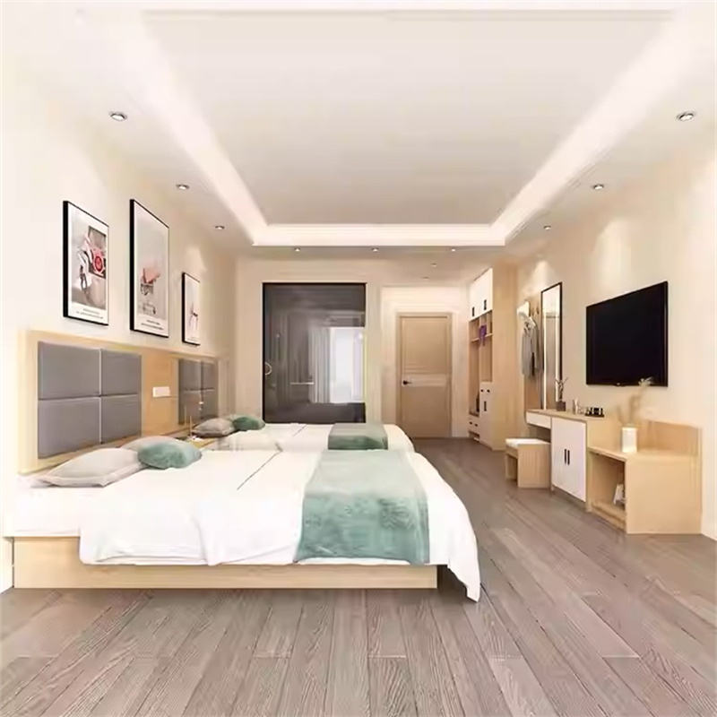 Juego de Dormitorio Moderno y Económico Personalizado para Hotel, con Marco de Cama de Madera en Tamaño King, Queen o Twin, con Armario, Mueble para TV y Mesa Auxiliar