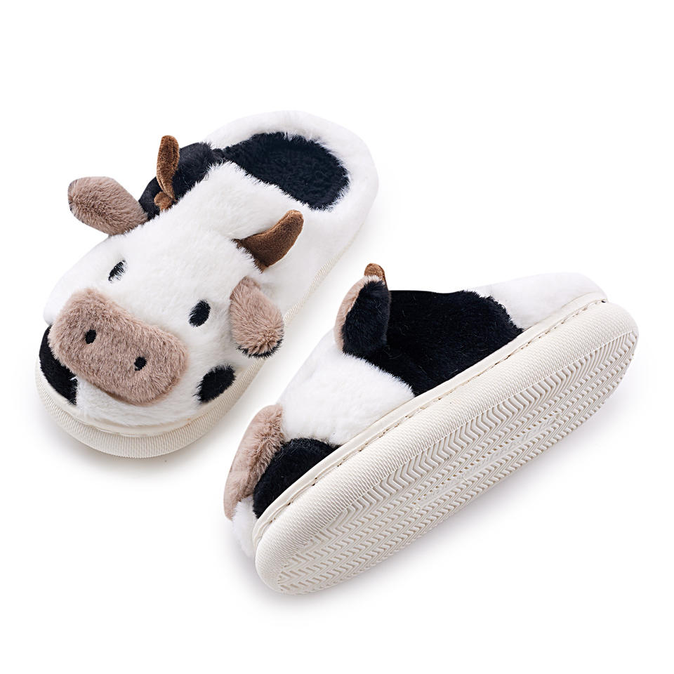 Personalizado a granel animales de dibujos animados esponjoso leche de vaca para zapatillas para niños adultos invierno cálido Interior Exterior felpa impermeable térmico