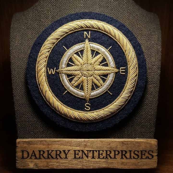 Parche Bordado Personalizado de Hilo Metálico, Insignia de Rosa de los Vientos Hecha a Mano, Hilo Dorado y Plateado, Emblema Náutico para Blazer, Uniforme o Distintivo