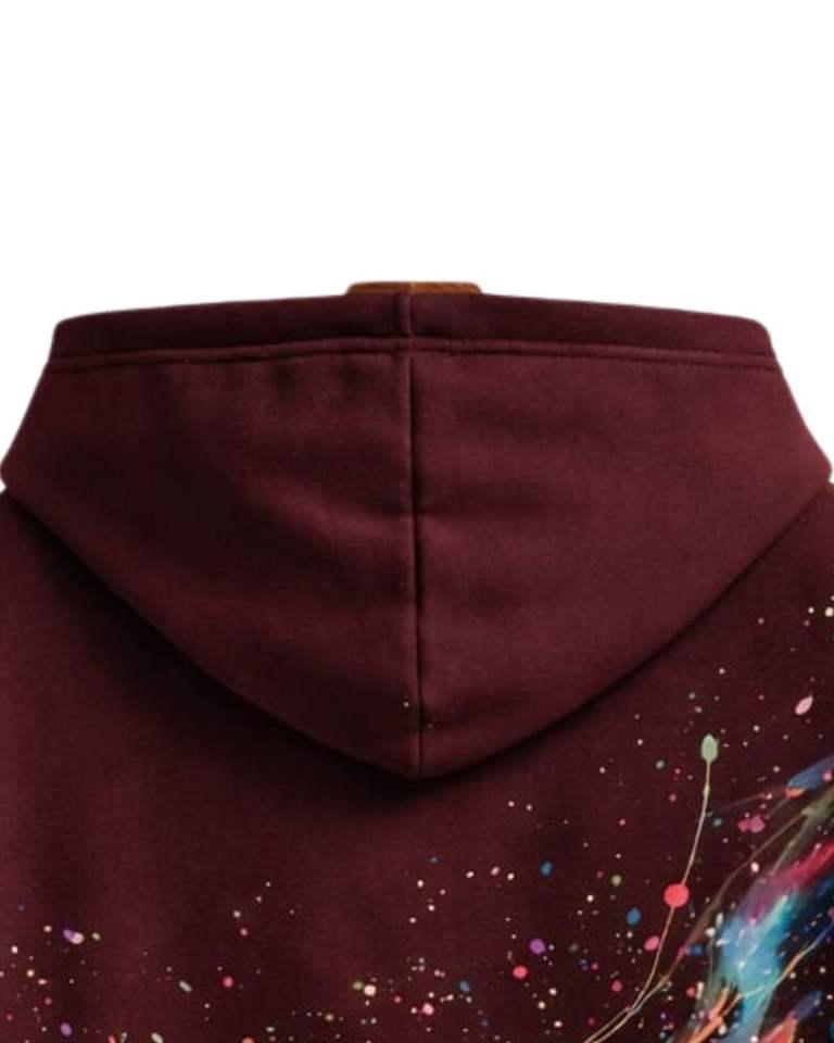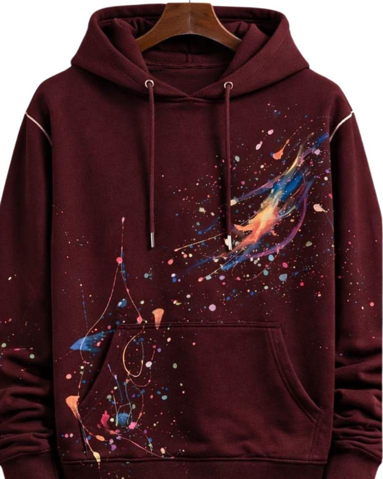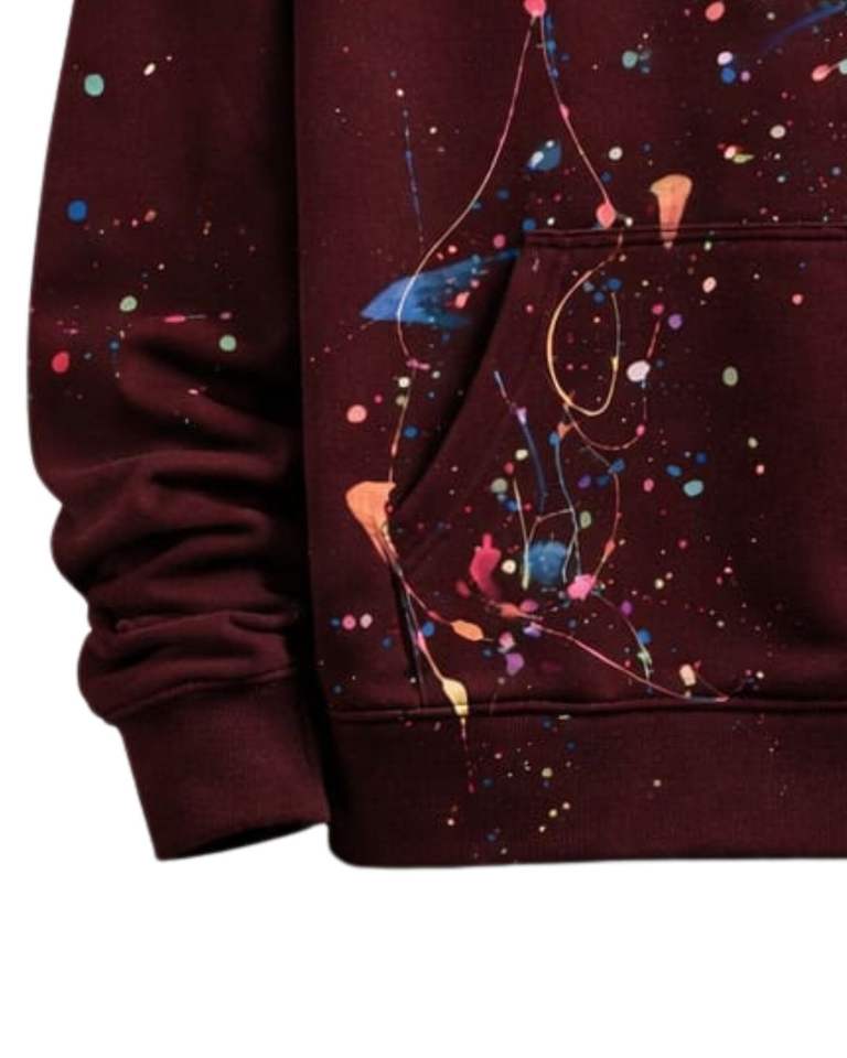 Sudadera con Capucha para Hombre, Diseño Abstracto con Salpicaduras de Pintura Color Borgoña, Algodón y Felpa, Estilo Casual, Streetwear, Fabricante Personalizado, Ropa al Por Mayor