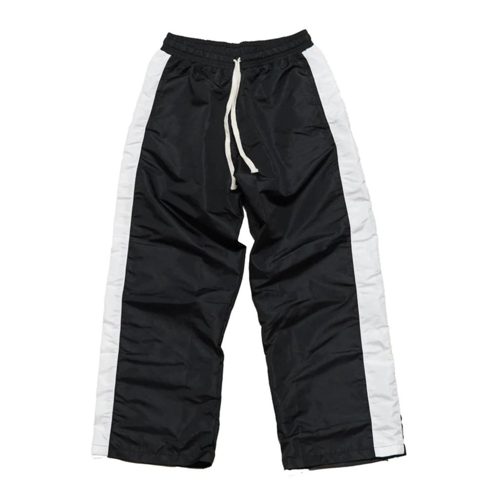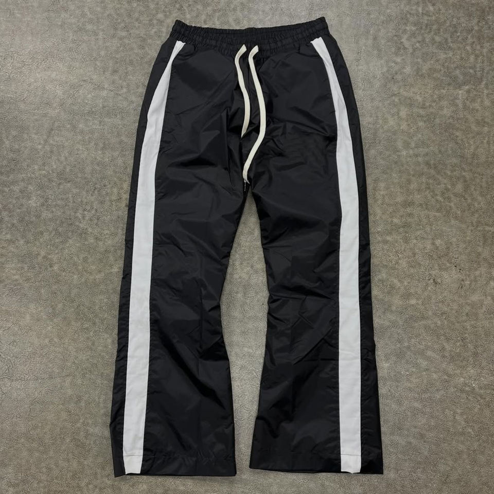 Pantalones de chándal de nailon acampanados estilo urbano con botones personalizados, pantalones cortavientos de nailon con rayas informales para hombre