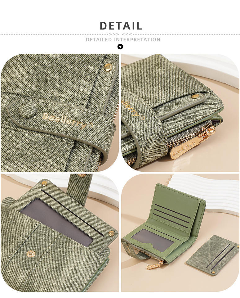 Cartera Pequeña de Lona Personalizada para Mujer, Billetera Delgada Bifold de Moda para Dama