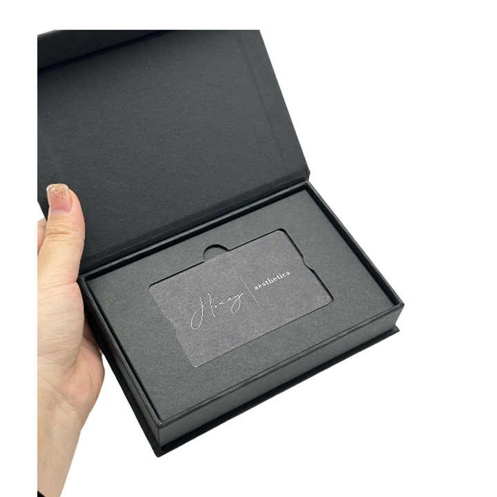 Embalaje de cartón personalizado Cierre de imán negro Tarjeta VIP Caja de regalo Logotipo de lámina dorada Cajas para tarjetas de crédito