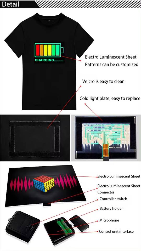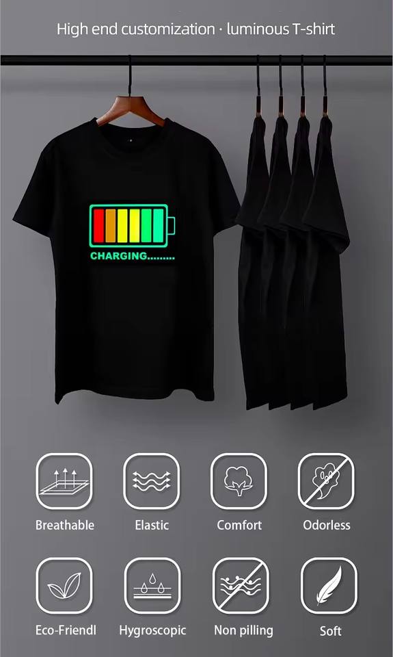 Camiseta Personalizada con Luces LED Activadas por Sonido para Fiestas de Carnaval, Ecualizador de Música Intermitente