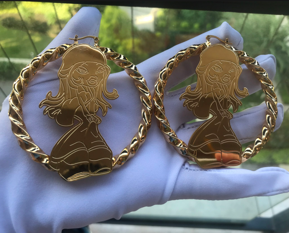 Pendientes de aro de bambú de personaje de dibujos animados personalizados para mujer, pendientes torcidos de acero inoxidable a la moda, nombre personalizado, envío directo disponible